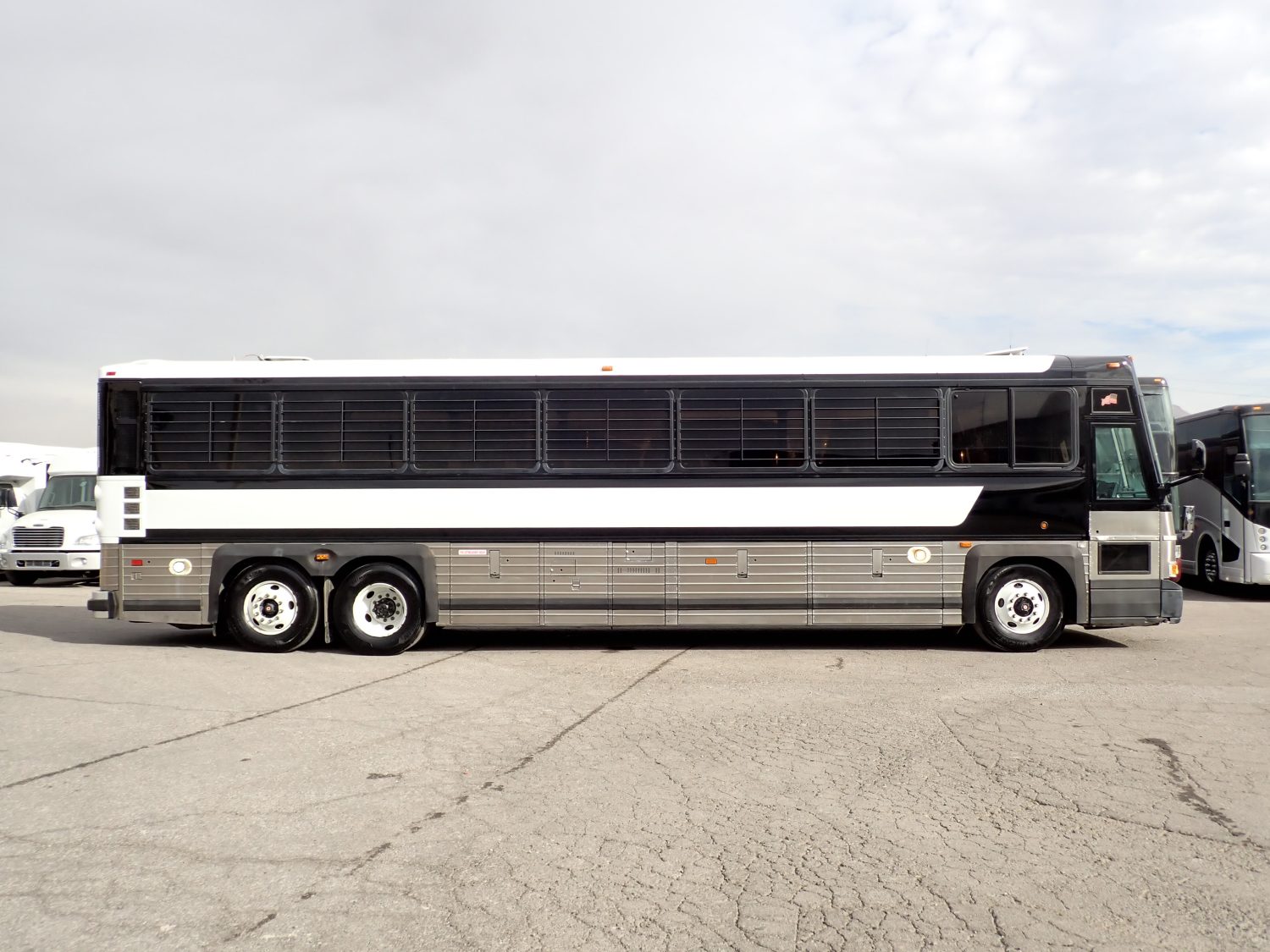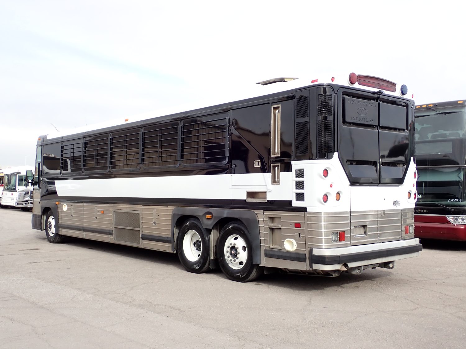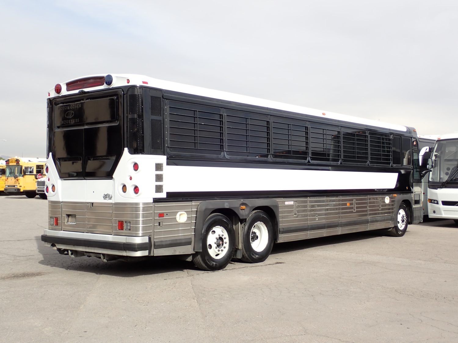 This is a 2008 MCI D4000 prison bus. It is a well maintained bus in excellent condition inside and out. This bus is powered by a 12.7 liter Detroit Diesel Series 60 engine, paired with a 6 speed Allison automatic transmission. Inside is seating for 48 detainees on vandal resistant seats. The bus is equipped with storage, A/C and heat, and an AM/FM stereo. Other options include PA system, backup camera, entry grab rails, cruise control, overhead lighting and more.