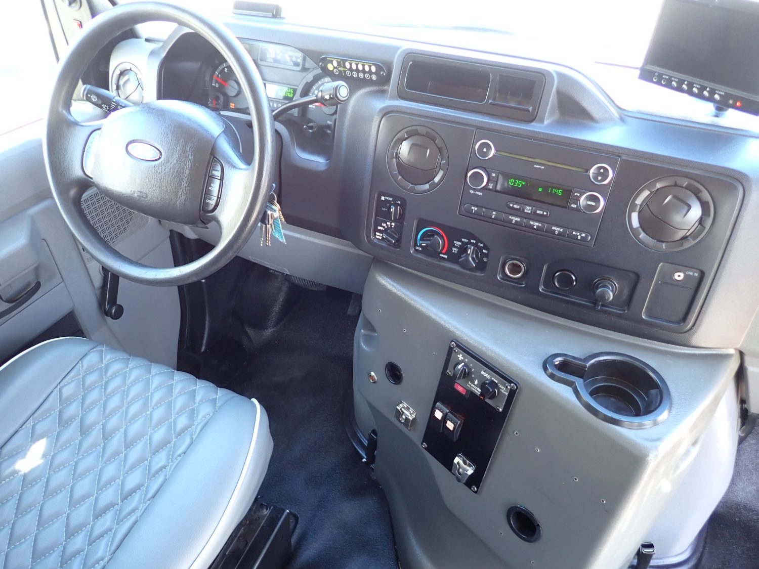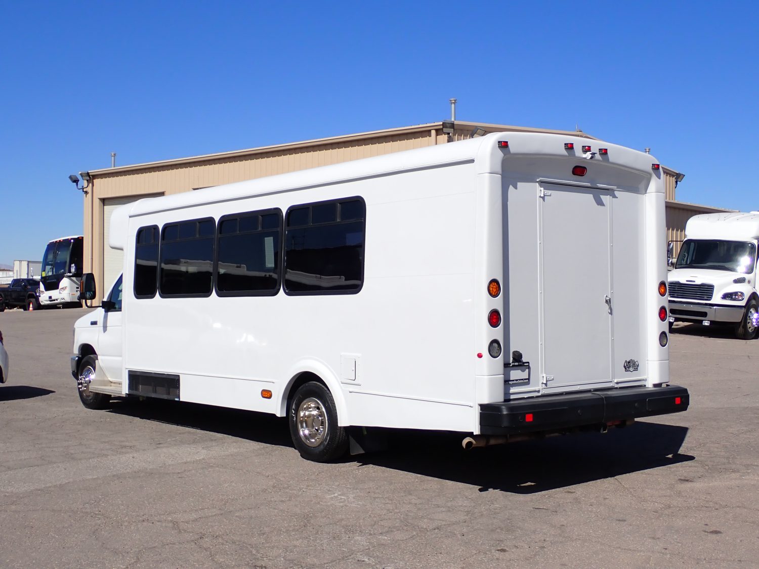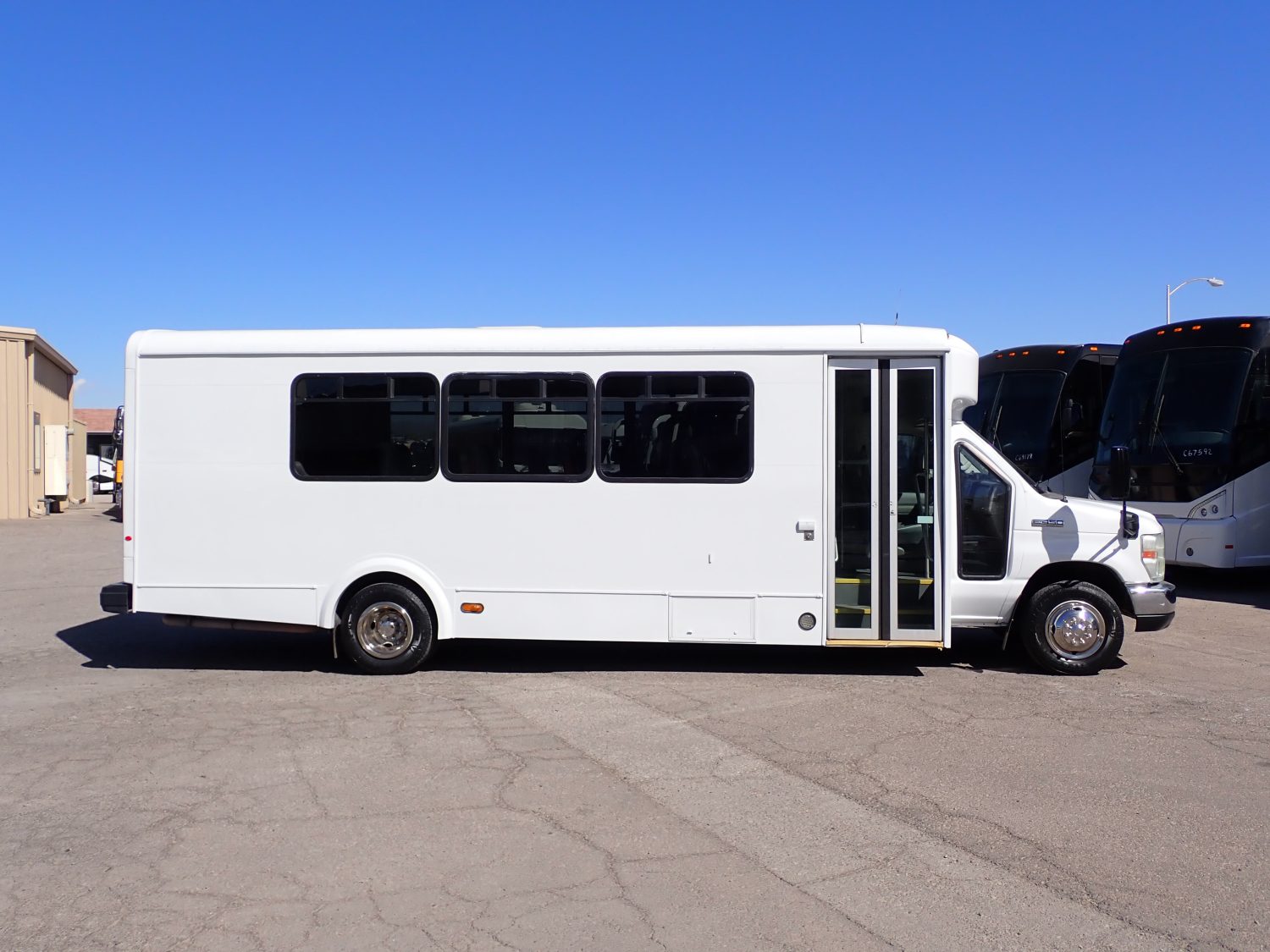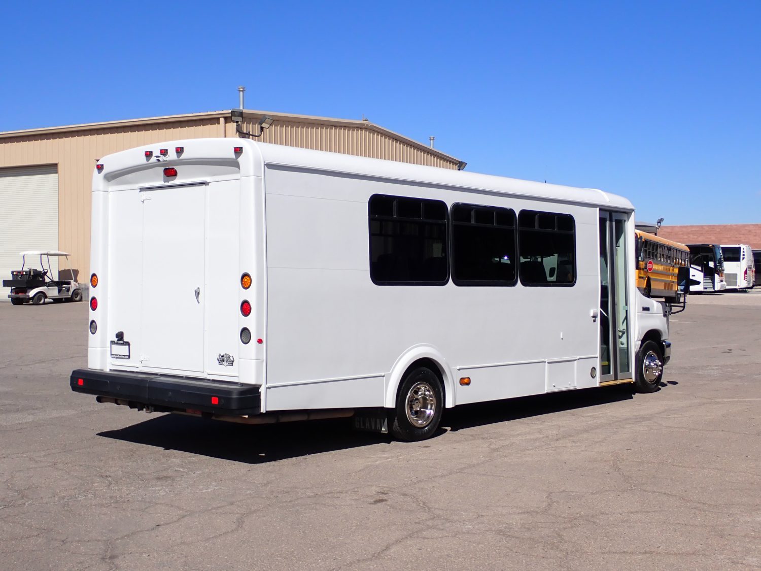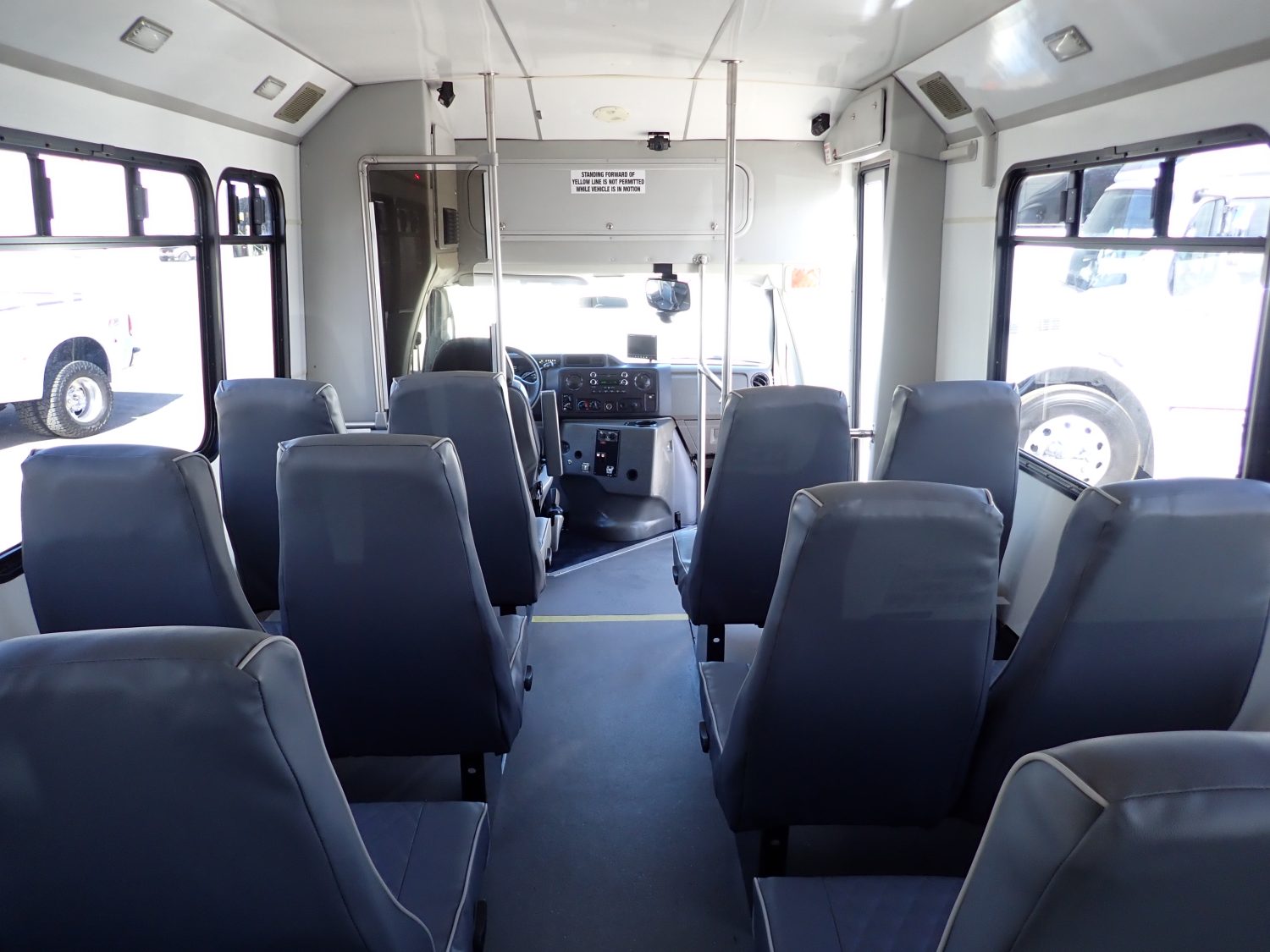 Here is a low mileage 2011 Glaval Universal Shuttle Bus! Built on a Ford E450 chassis and powered by the popular 6.8-liter V10 gas engine. This bus seats 21 passengers on high back reclining seats with new upholstery. Other options include rear luggage, front and rear A/C and heat, AM/FM stereo with CD and more.