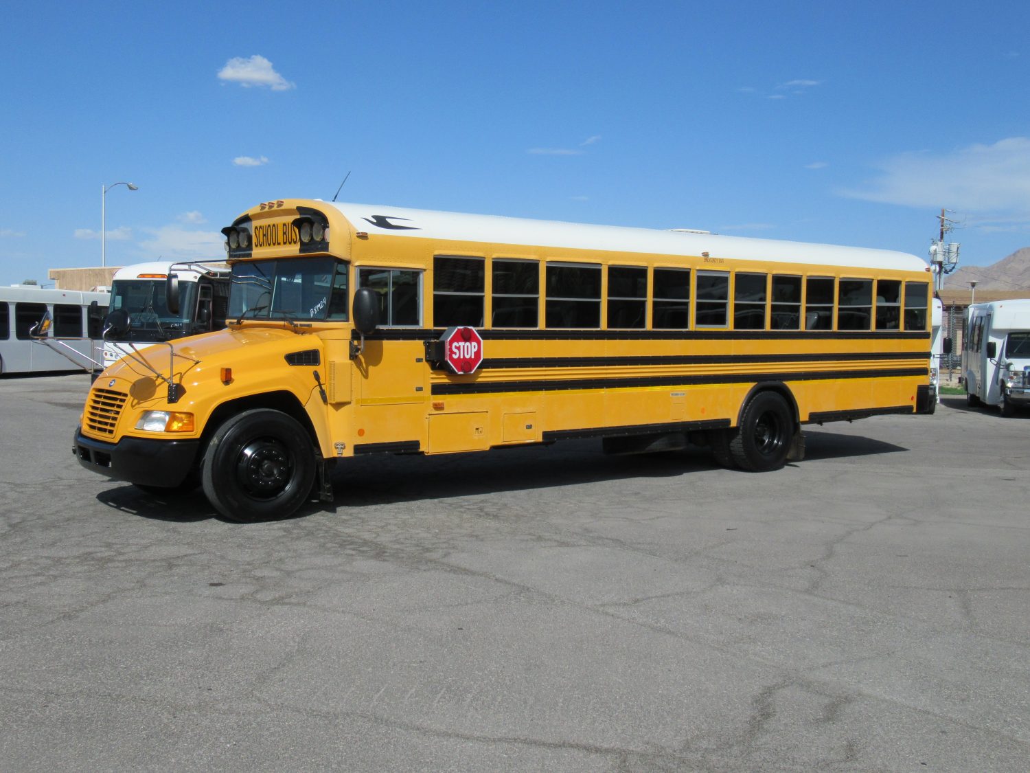 Just in is this 2011 Blue Bird Vision school bus power by a CARB compliant 6.7 Cummins diesel engine with an automatic Allison transmission. Passenger seating consists of 11 rows of gray benches in good condition. The interior has an impressive amount of space, with 6′ 4″ of headroom and 7′ 7″ of width. Other options include AM/FM stereo, air actuated bi-fold doors, and more.