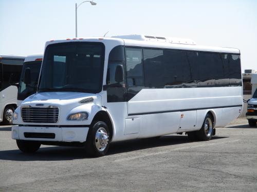 Here we have a 2013 ABC M1235 shuttle bus! This bus features seating for 30 passengers on high back reclining seats and 3 point seat belts. Between the HUGE rear luggage and the overhead parcel racks, there is plenty of luggage storage for passengers. The body is assembled onto a Freightliner chassis and is powered by a 6.7 liter Cummins turbo diesel engine. Other features include a public address system, a 4 monitor DVD system, individual vents and reading lights, and more! Call us today for more information! 1-877-456-9804. *Financing is Available*